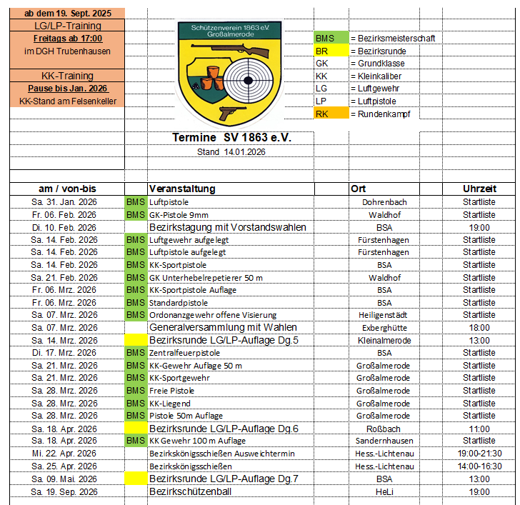 Den Sieg bei der Luftpistolen-Auflage sicherte sich die 1. Mannschaft von Großalmerode mit 569 Ringen. Mit 548 Ringen folgte die 2.Mannschaft von Großalmerode.